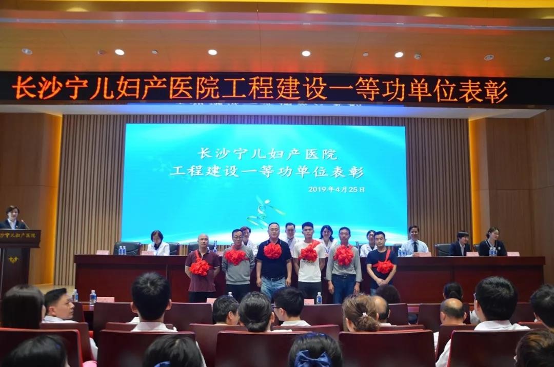 4月25日下午,有我公司参建项目的宁儿医院集团2019年度五一劳动模范、五四优秀青年表彰大会暨星光广场启用仪式隆重召开,长沙生殖医学医院、长沙宁儿妇产医院、湘西宁儿生殖医学医院相关领导、各科室负责人及受表彰人员共计300余人参加了大会,我公司作为参建单位受邀参加会议。