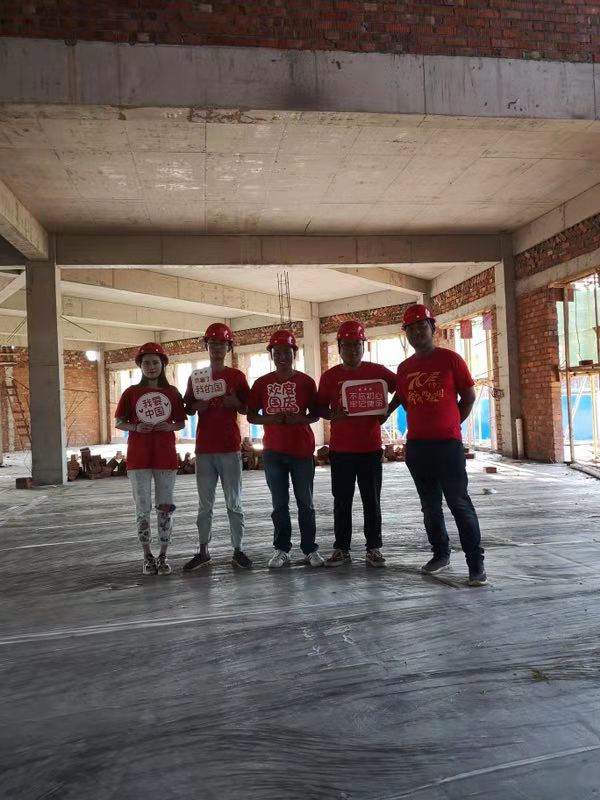 2019年10月1日,在祖国母亲的70华诞之际,举国欢庆。金辉建设集团郡华·长郡里项目部却是一派热火朝天的景象,大家坚守在建设第一线,用汗水、用实干、用敬业奉献的精神为祖国献礼。